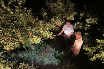 图为渠县支行信贷业务分管领导段几参与夜间灌溉